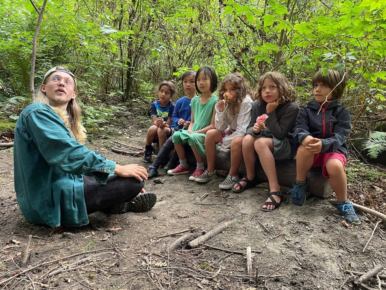 "We have watched our two children blossom in many ways under the mentorship of Storm Stewart and his Wilding Education curriculum. Spotting birds and eagles, edible plants, nests in trees, and animal tracks in the mud, sharing their new knowledge of plants and animal habitats, their eyes are opened to the many nuances of the natural world in a way they weren't before this year. The mix of outdoor education and nature and play based learning, as well as social emotional learning in a group of their peers has helped them grow in such beautiful ways this year. Storm is a wonderfully playful, patient, grounded, calm and thoughtful mentor. He is receptive to both our children's needs, and ours as parents, and eager to communicate with us for the greater good of our children. But perhaps the greatest testament to Storm's skills and his wonderful program are that our children absolutely love going to school on the days they attend his program! They love him as a human, and they deeply look forward to the time they spend with him and their peers in the woods. As parents, that is the best outcome we can wish for."
